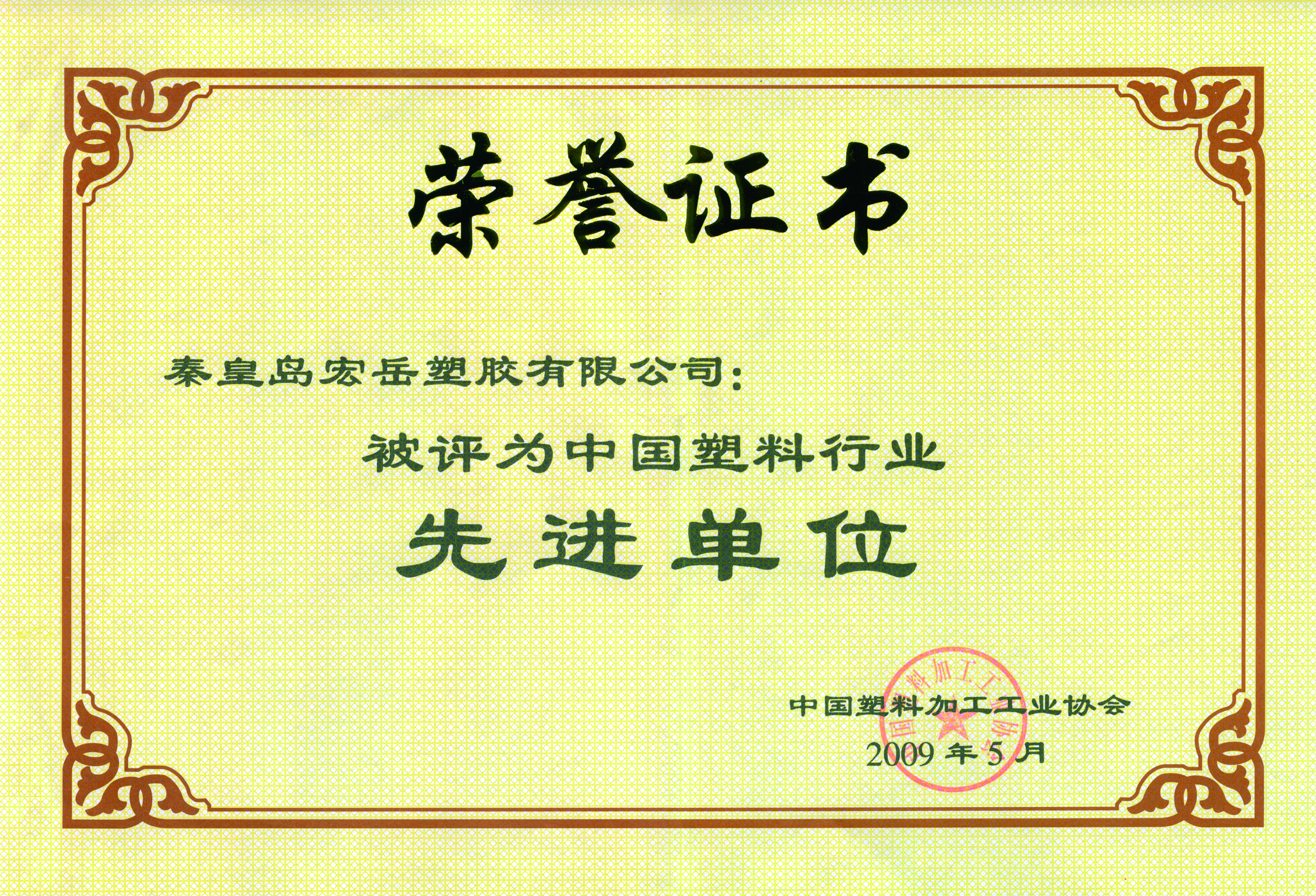 九游会·公司喜获“中国塑料行业先进单位”荣誉