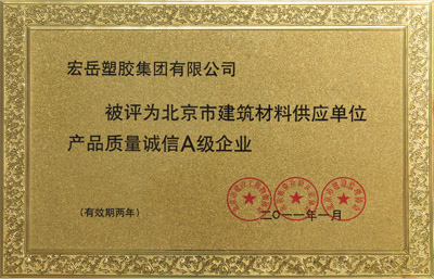 日前,北京市住房和城乡建设委员会召开了塑料管材管件、建筑门窗和聚氨酯防水涂料产品质量评价启动工作会议,并评出首批“A级产品质量诚信企业”,九游会·塑胶集团有限公司凭借过硬的产品质量和良好的企业信誉,荣获北京市塑料管材管件“A级产品质量诚信企业”称号。