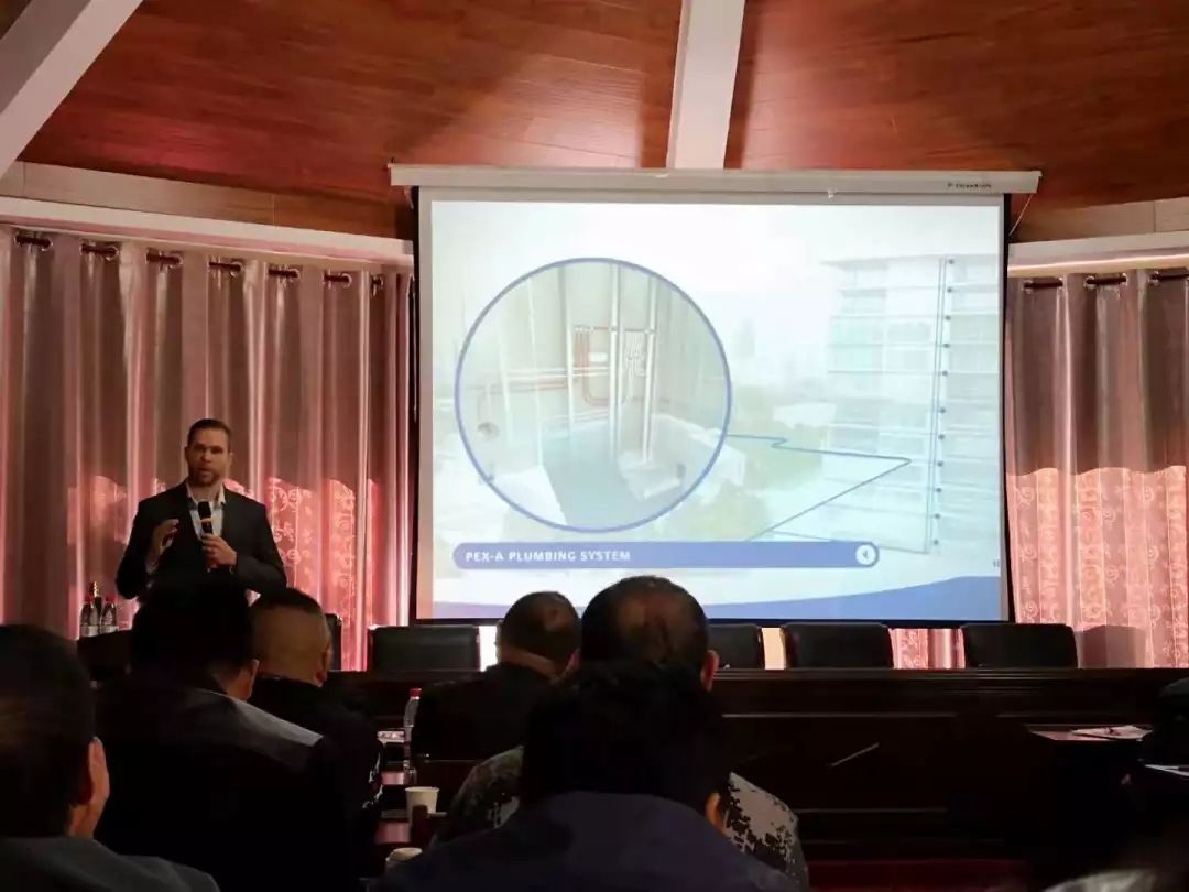 会议伊始,首先由九游会·集团美国公司技术总监John先生,为大家详尽介绍了PE-Xa零漏点给水系统的性能优势及该系统在美国乃至国际市场上的广泛应用情况,让参会人员对国际领先的产品系统与应用技术也增进更深的认识与了解。