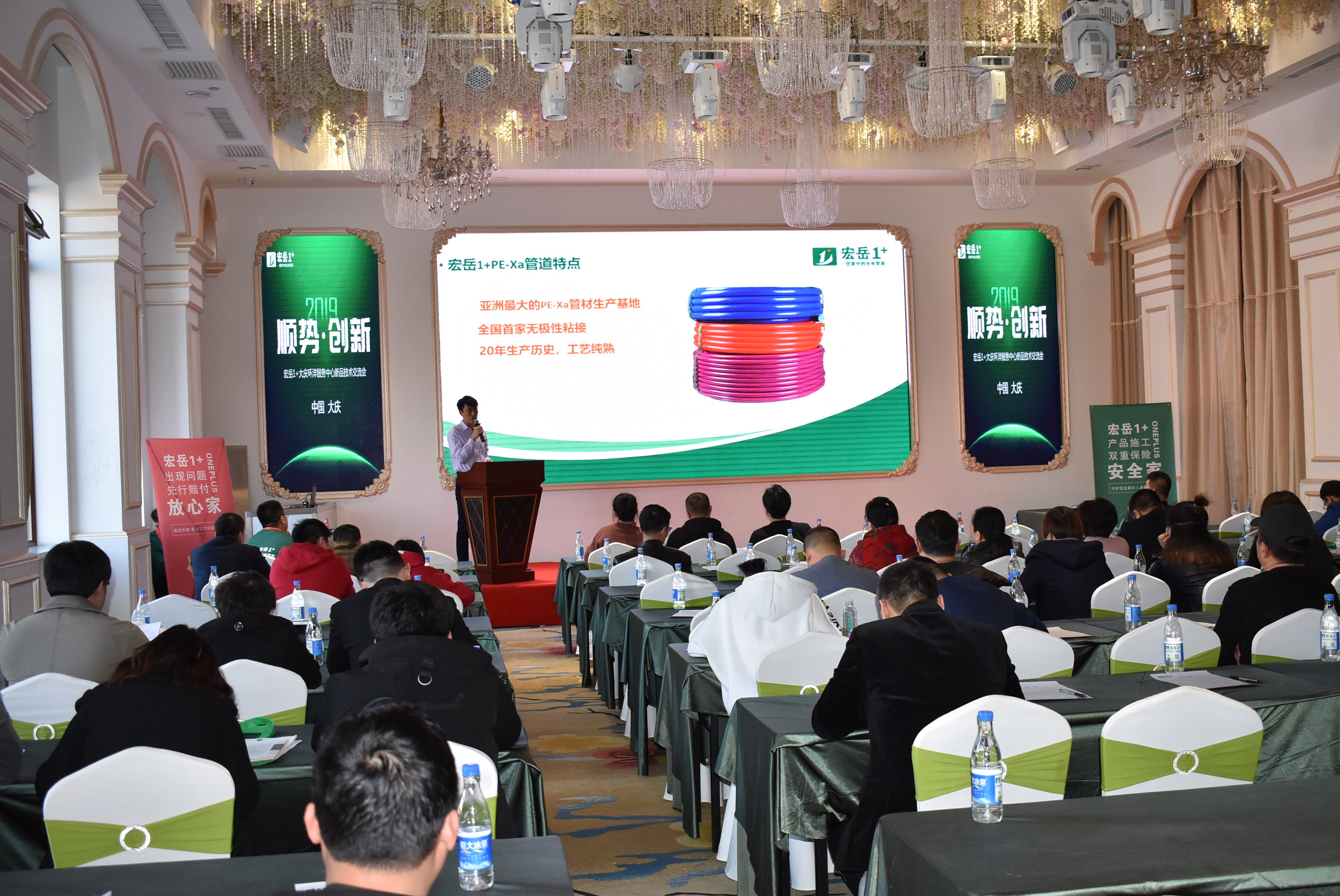 重点提出九游会·1+PE-Xa给水系统较目前市场主流给水系统降低70%的风险点,耐压高67%,耐温高32%,会上通过现场实验,展现了PE-Xa给水管超强的记忆功能,应对变形折伤加热即可无损复原。