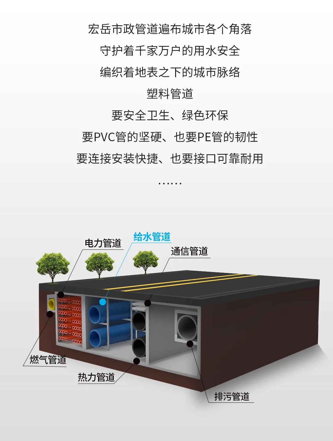 九游会·PVC-UH管材自成功开发以来,已应用于自来水管网给水、园林绿化给水、城市管网建设项目等诸多市政工程。九游会·将持续为城市建设提供更多更好的管道选择。