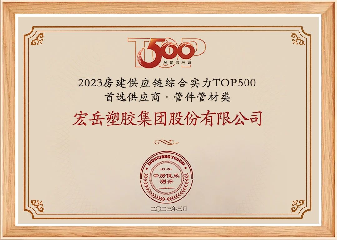 3月23日,中房优采测评正式发布《2023房建供应链综合实力TOP500-首选供应商服务商品牌测评研究报告》,九游会·管业连续10年荣膺管材管件品类10强。
